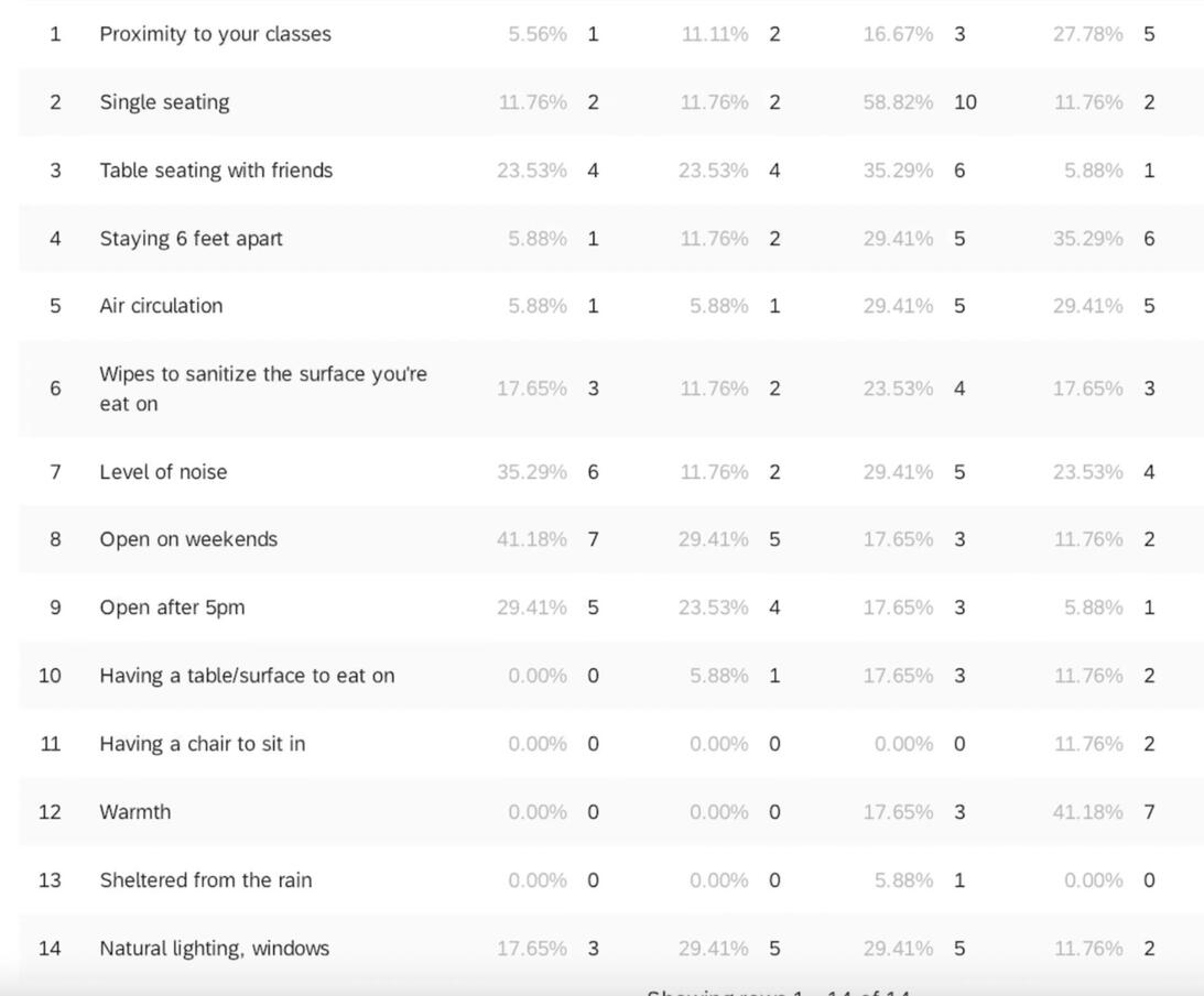 Problem: Covid-19 has led to new indoor eating guidelines for students on-campus. People don’t feel comfortable in crowded indoor spaces unmasked.