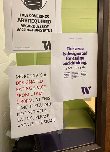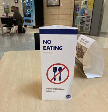 Proposal: We propose that if the issue of crowded, indoor, unmasked, eating spaces was addressed, students would be more comfortable eating on campus and be more compliant with safety regulations. However, we recognize that raising awareness of designated eating locations may make those spaces and other dining locations more crowded, potentially impacting the infection rate while also reducing the number of quiet, secluded spaces on campus